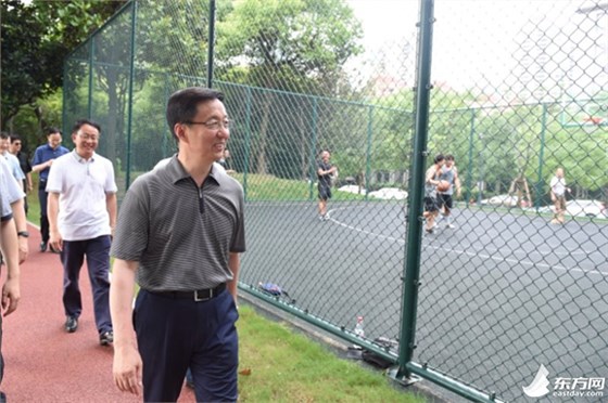在黄浦滨江段,市领导一路步行,察看十六铺二期观景平台,这一区域将打造成为水陆游憩衔接的滨江空间。南浦大桥下的世博黄浦体育园,孩子们正在足球场上踢着足球,周边公共配套设施也在逐步完善中。市领导走上亲水平台,了解防汛设施与市民活动空间的统筹布局情况。韩正说,滨江空间贯通开放要坚持质量,坚守底线。